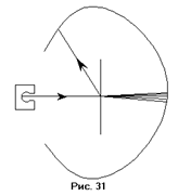 Вторая модель, модель Резерфорда (рис.36), приписывала атому строение, аналогичное строению Солнечной системы: в центре находится положительно заряженное ядро, вокруг которого, подобно планетам, движутся электроны, удерживаемые у ядра силами кулоновского притяжения. Спор между двумя этими теориями разрешил эксперимент, поставленный Резерфордом. Резерфорд изучал движение тяжёлых положительно заряженных частиц в поле, создаваемом атомом. Схема использовавшейся установки приведена на рисунке 31. Узкий пучок