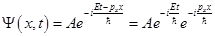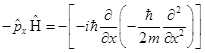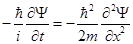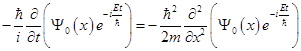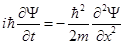 Рассмотрим свободное движение частицы, то есть такое движение, при котором на частицу не действуют внешние силы. Исходя из определения, ясно, что потенциальная энергия частицы равна нулю, так как потенциальная энергия есть энергия взаимодействия, а при его отсутствии она, очевидно, равна нулю. Тогда в операторе Гамильтона останется лишь слагаемое, описывающее её кинетическую энергию. В классической механике кинетическая энергия системы или частицы описывается следующим выражением: . В квантовой же механике эту величину описывает оператор Гамильтона. Для одномерного случая:    (1). Уравнение частицы описывается уравнением Шредингера: . Подставляя в него (1), получим:  или . В большинстве случаев движущейся частице можно поставить в соответствие волну де Бройля, поэтому мы можем выбрать волновую функцию, описывающую плоскую волну: , где . Таким образом, . Подставим этот вид волновой функции в уравнение Шредингера: . Дифференцируя, вынося из-под знака дифференциала константы, и сокращая одинаковые множители, получим: . В итоге, получим: . Приведём полученное дифференциальное уравнение к стандартному виду: . Итак, мы получили дифференциальное уравнение второго порядка, независящее от времени. Оно называется стационарным уравнением Шредингера. Решая его, получим:            (2). Мы можем так записать, так как  и, следовательно, . Первое слагаемое в выражении (2) описывает движение частицы в направлении оси , а второе – против направления этой координатной оси. Итак, в общем случае: . Таким образом, общее уравнение Шредингера имеет однозначное и непрерывное решение, которое существует для любых значений , что означает, что энергия свободно движущейся частицы может принимать любые значения, то есть энергетический спектр непрерывен. Более того, энергия частицы и её импульс являются величинами одновременно измеримыми, то есть .