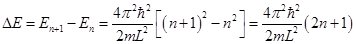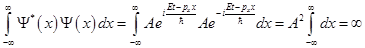 Так как спектр собственных значений энергии непрерывен, то нормировка волновой функции оператора энергии на единицу невозможна. Действительно: . Поэтому пользуются условием нормировки на длину периодичности. Этот способ состоит в следующем. Пусть само по себе движение частицы неограничено, но нас интересует движение частицы на участке . В этом случае мы можем рассматривать не всё бесконечное пространство, а участок длиной . Пусть вне этого участка значения волновой функции повторяются, то есть волновая функция периодична с периодом . Условие периодичности мы можем записать в виде: . Так как движение ограничено, то спектр энергии может быть дискретен. Найдём все возможные значения энергии: . Условие периодичности нам даёт следующее выражение: . Очевидно, что данное равенство возможно, если . Распишем эту экспоненту:. Отсюда , . Таким образом, импульс принимает какие-то строго определённые значения, значит, и энергия тоже принимает определённые дискретные значения: . . Величина  называется шагом дискретизации энергии.  Найдём расстояние между энергетическими уровнями: . Из последней формулы видно, что расстояния между энергетическими уровнями обратно пропорциональны . Таким образом, чем конкретнее и меньше , тем разрежённей энергетические уровни. При   спектр, очевидно, становится непрерывным. Обобщая предыдущие рассуждения, можно сказать: чем точнее локализовано положение частицы. Тем ярче выражена дискретность её спектра.