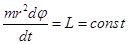 – площадь, охватываемая орбитой электрона. Как уже было сказано выше, электрон движется в поле центральных сил. В поле центральных сил момент импульса является интегралом движения1. Поэтому в полярной системе координат: