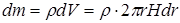 За элемент массы dm возьмем массу этой трубки. Объем трубки равен