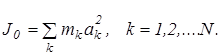 Моментом инерции системы материальных точек массой mК относительно точки О, состоящей из N точек, называется сумма произведений масс этих точек на квадраты их расстояний