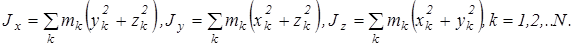 Подставим эти выражения в (2.6), получим моменты инерции относительно декартовых осей координат: