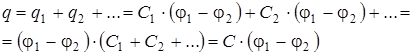 В случае параллельного соединения (рис.2.9) общий заряд равен: