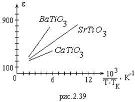 , сегнетоэлектрик превращается (рис.2.37) в обычный полярный диэлектрик (параэлектрик). Переход сегнетоэлектрик Û параэлектрик сопровождается скачком фазового объема, т.е. является фазовым переходом первого рода. Для таких переходов характерен резкий рост проницаемости