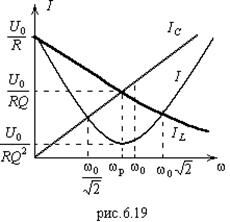На рис.6.19 изображены зависимости токов (6.82), (6.84) и (6.88) от частоты. При