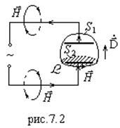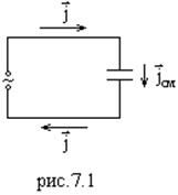 Рассмотрим цепь переменного тока с плоским конденсатором (рис.7.1). Между обкладками сосредоточено электрическое поле