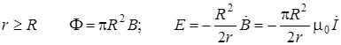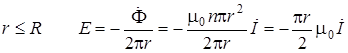 Длинный прямой соленоид радиуса R имеет n - витков на единицу длины. По нему течет ток