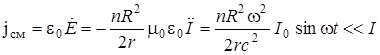 Следовательно, ток смещения порождает в конденсаторе такое же магнитное поле, как ток проводимости. Экспериментально это проверяется с помощью пояса Роговского.