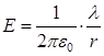 - напряженность поля, созданного длинной заряженной нитью в точке, расположенной на расстоянии r.