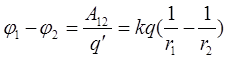 разность потенциалов – работа электростатических сил по перемещению единичного положительного заряда из одной точки в другую.