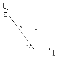 На рисунке 1.5 представлена вольтамперная характеристика U=f(I) идеального источника напряжения (кривая «a»), где на осях обозначены: