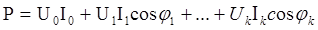 где U и I — действующие значения несинусоидальных напряжения и тока.