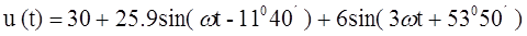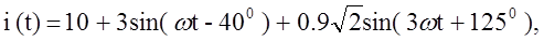 Пример 4.2. Определить активную и полную мощности линейной электрической цепи при несинусоидальных напряжении u(t) и токе i(t) :