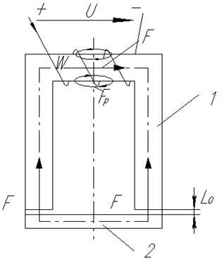 – плотность электромагнитной энергии (энергия в единице объема зазора), S0 – площадь одного воздушного зазора. Приравняв dWмех и dWэм, получим расчетную формулу силы притягивания электромагнита