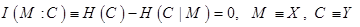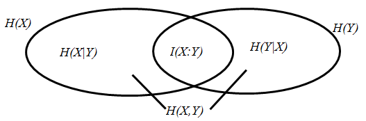 Напоминание (из Лекции 3). По определению взаимная информация I(X:Y) есть мера того сколько информации содержат Х и Y друг о друге. Например, если Х и Y - независимые величины, то p(x,y) = p(x)p(y), так что I(X:Y) = 0. Соотношения между основными мерами классической информации показаны на рисунке. H(Y|X) есть мера того, сколько информации, в среднем, оставалось бы в Y при условии, что мы бы знали Х.