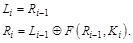 Здесь Кi - 48-битовый подключ, вырабатываемый по простым процедурам из 56-битового секретного ключа и используемый на i-ом раунде. Сущность алгоритма заложена в преобразованиях, которые выполняются для получения значения функции