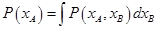 , причем, переменные xA - это те, которыми интересуемся мы - вокруг нас, а xB - остальные переменные вселенной. Если нас интересует вероятность того, что что-то произойдет “вокруг нас”, т.е. в т. хА , мы должны проинтегрировать общую вероятность по “лишним” переменным. Если мы уже вычислили эту вероятность, то нам осталось выполнить интегрирование: