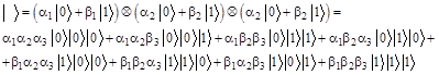 В этом примере было использован один из фундаментальных принципов квантовой механики, который состоит в том, что совместное пространство квантовых состояний двух систем является тензорным произведением пространств отдельных состояний. Поэтому пространство квантового состояния n кубитов - это пространство