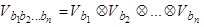 . Базисные вектора этого пространства можно параметризовать бинарными строками длиной n. В дальнейшем широко будет использоваться тензорное разложение такого пространства на n копий размерностью С2. Здесь базисное состояние Vb , отвечающее бинарной строке