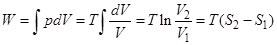 За счет уменьшения энтропии можно совершить работу. Для этого достаточно двигать перегородку в сторону пустого объема вплоть до его исчезновения. Работа будет равна