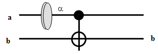 Сохраняем значение (ку)бита а, в то время как (ку)бит b меняется по закону XOR:
