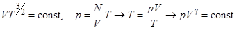 Среднее давление на стенку при N = 1, равно p = T/V, а средняя плотность n = 1/V. Рассмотрим случай изотермического процесса, когда Т = const. Из первого начала при Т = const. и p = T/V получаем