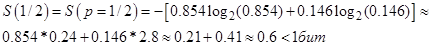 (Видно, что S, вычисленная из последней матрицы отличается от H(p, 1-p)).