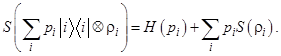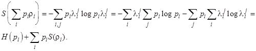 8. Энтропия смеси квантовых состояний. Обратная сторона условия вогнутости проявляется в некоей полезной теореме, дающей верхнюю границу для энтропии смеси квантовых состояний. А именно, что для смеси
