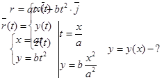 В уравнении траектории не должно быть параметра времени – это строгая зависимость одной координаты от другой.