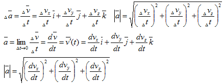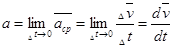 Мгновенным ускорением точки в определённый момент времени называют векторную величину, равную пределу, к которому стремиться среднее ускорение этой точки в промежуток времени от t до Δt при Δt à 0: