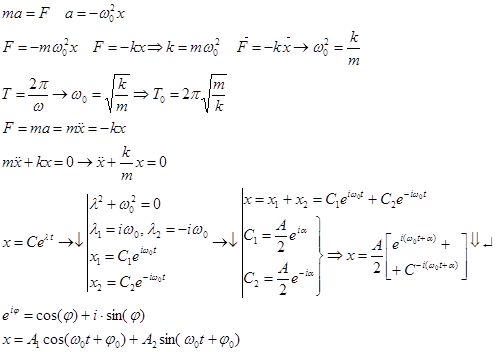Вывод дифференциального уравнения незатухающих гармонических колебаний: