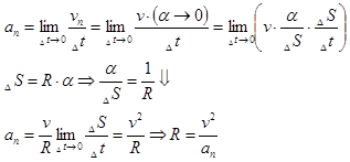 Радиус кривизны – это отношение квадрата скорости к нормальному ускорению.