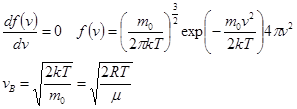 Наиболее вероятная скорость vB – соответствует максимуму f.