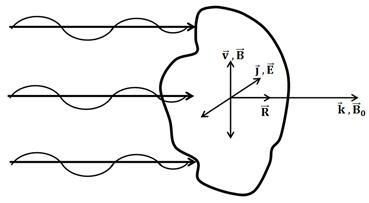 всегда перпендикулярна как направлению внешнего магнитного поля, так и направлению тока в волне, то есть движение вещества происходит в плоскости, перпендикулярной к направлению распространения и под углом 900 к направлению тока и электрического поля, то есть вдоль направления переменного магнитного поля волны