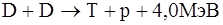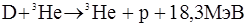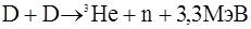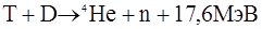 – тритий. Все реакции дают выигрыш в энергии, если учесть затраты энергии на преодоление кулоновского барьера (0,15 МэВ с участием только изотопов водорода, 0,3 МэВ с участием гелия, 0,5 МэВ с участием лития). Решающее значение при выборе реакции имеет возможность достижения условий, при которых выбранная реакция идёт со скоростью, представляющей технический интерес.