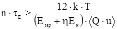 отсюда для успешной работы термоядерного реактора необходимо выполнить условие: