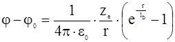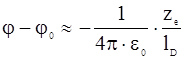 В первом приближении можно считать, что потенциал частицы сказывается только внутри дебаевской сферы, а вне её пренебрежимо мал. Тогда: