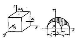 К третьему классу относятся так называемые смешанные напряженные состояния, в которых наибольшее и наименьшее из главных напряжений имеют разные знаки. Напряжение