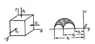 При исследовании вопросов прочности в сложном напряженном состоянии существенное значение имеет вид напряженного состояния. Большинство материалов по-разному разрушается в зависимости от того, являются ли напряжения растягивающими или сжимающими. Как показывает опыт, все материалы без исключения способны воспринимать весьма большие напряжения в условиях всестороннего сжатия,