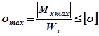 Условие прочности при изгибе формулируется следующим образом: Балка будет прочной, если максимальные нормальные напряжения не превысят допускаемых напряжений