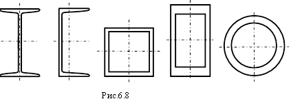. Поэтому, сечения с большим Wx ,будут более рациональными. Так например, прямоугольное сечение, показанное на рис.6.7а предпочтительнее использовать при изгибе под действием вертикальной нагрузки так как осевой момент сопротивления сечения изгибу