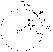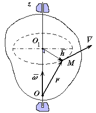 Рассмотрим какою-нибудь точку М твердого тела, находящуюся на расстоянии h от оси вращения. При вращении твердого тела точка М будет описывать окружность радиуса h, плоскость которой перпендикулярна оси вращения, а центр О лежит на самой оси. Если за время