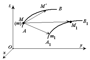 Движение точки относительно основной неподвижной системы отсчета O1x1y1z1называется абсолютным (или сложным). Траектория, скорость и ускорение этого движения называются абсолютными. Их обозначают без индекса.