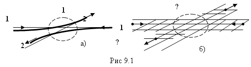 В случае столкновения классических тел всегда можно установить, какое из них отскочило вверх или вниз (рис.5.1.а).
