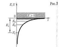 Графически функция U(r) изображена жирной кривой на рис. 305. U(r) с уменьшением г (при приближении электрона к ядру) неограниченно убывает.