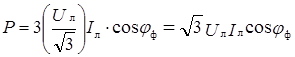P = 3Pф = 3UфIф cosφ,  где Pф – показание ваттметра.