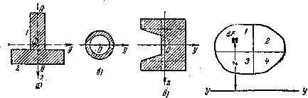 При проверке прочности частей конструкций нам приходится встречаться с сечениями довольно сложной формы, для которых нельзя вычислить момент инерции таким простым путем, каким мы пользовались для прямоугольника и круга.