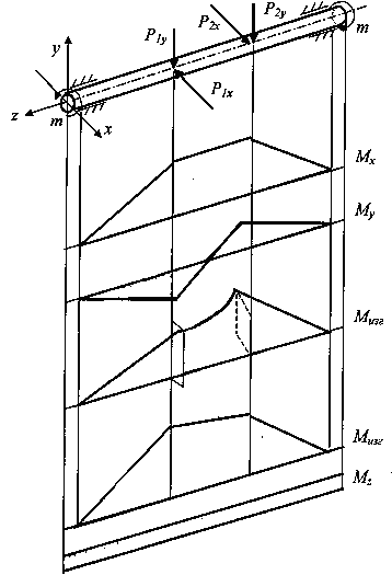 Рис.1. Расчетная схема изогнутого и скрученного вала