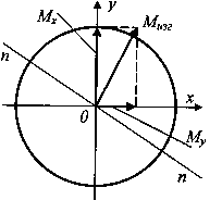 У кругового и кольцевого поперечного сечений все центральные оси главные, поэтому косого изгиба у вала вообще не может быть, следовательно, нет смысла в каждом сечении иметь два изгибающих момента Mx, и My а целесообразно их заменить результирующим (суммарным) изгибающим моментом (рис. 2)